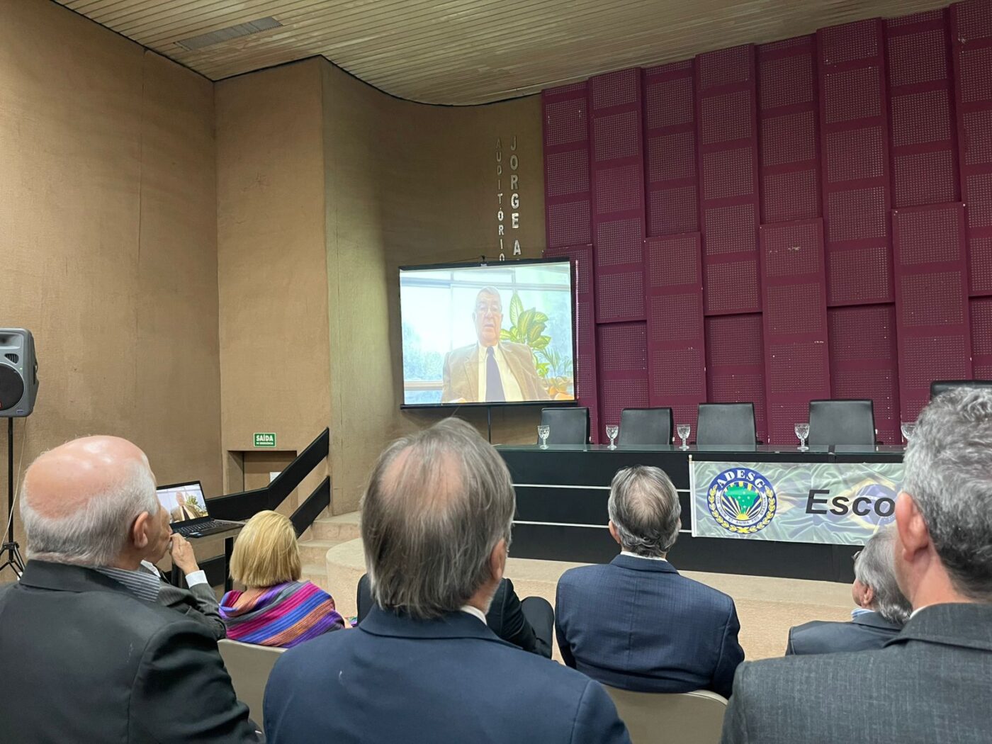 A solenidade foi aberta com mensagem em vídeo do Presidente Nacional da ADESG, Coronel da Aeronáutica Antônio Celente Videira, que destacou a relevância da formação estratégica em um mundo marcado por rápidas transformações.