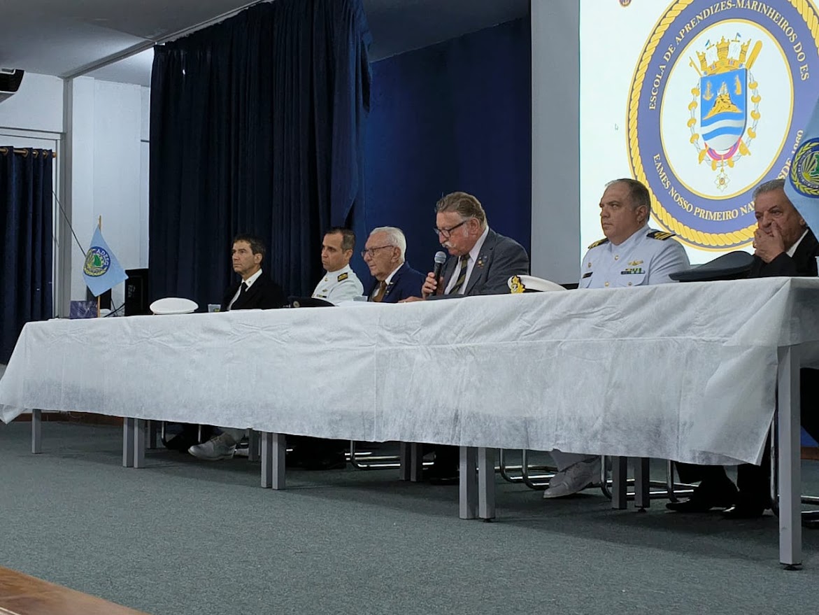 Solenidade presidida pelo Delegado da ADESG Adm. Ricardo Bergmann, contou com a presença do Contra Almirante Carlos Alberto Pimentel Mello, Capitão de Fragata Wendel Armani – Capitão dos Portos do Espírito Santo, Coronal BM Benicio Ferrari Junior – Adesguiano e Coordenador da Defesa Civil no Estado, Capitão de Fragata Ricardo Russio Carvalhaes Adesguiano e Comandante da EAMES, Deputado Estadual Danilo Bahiense Moreira e Tenente R2 Veterano Joelson da Silva Coelho representando a AORE-ES.