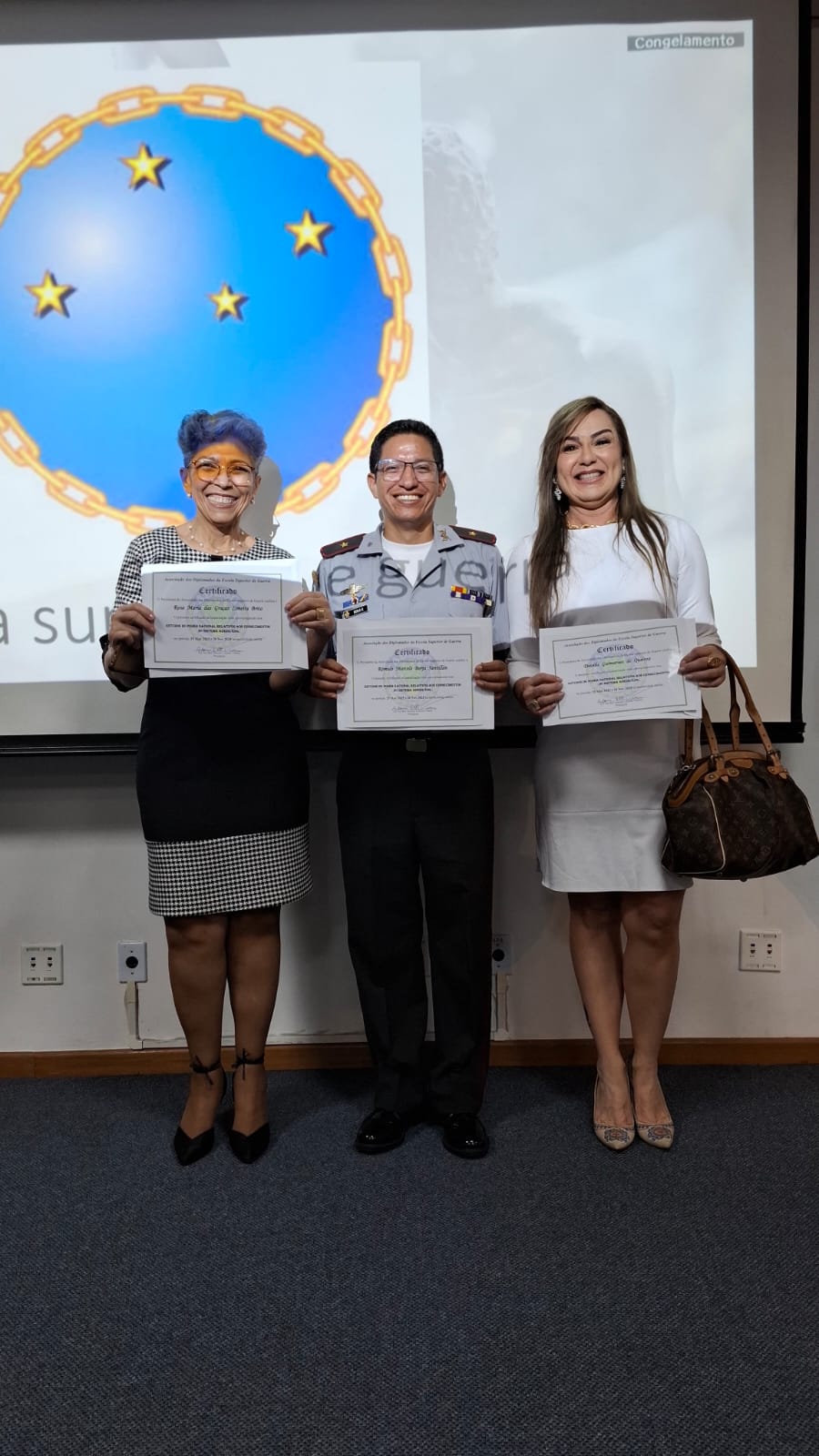 Em seguida, o Cel. HERVERTON FRANCISCO DE ASSIS MARIA, Diretor do INSTITUTO VENTURO ON LINE, pronunciou suas palavras de agradecimento pela confiança, desejando sucesso diante dos novos desafios. Já o Cel. ANTONIO CELENTE VIDEIRA, Presidente da ADESG, em seu discurso foi contundente em mostrar a LUZ do Conhecimento para o aperfeiçoamento de cada um e da própria humanidade.